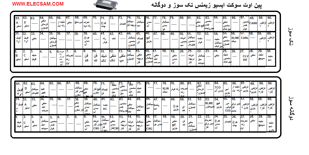 لطفا اگه ممکنه شماره پین اوت سیگنال سنسور کیلوتر در سمند دوگانه سوز با( ECU بنزین زیمنس 90 پین و ECUگاز زیمنس 1سوکت کور) رو بفرمایید.