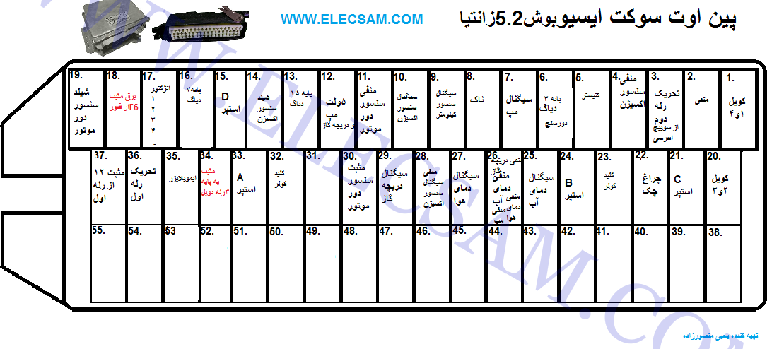 پین اوت ها, راهنمای تعمیرات و مستندات فنی, نقشه ها پین اوت سوکت ایسیو بوش 5.2زانتیا تاریخ: مهر 15, 1403دی 27, 1404 نویسنده: یحیی منصورزاده بازدیدها: 829 یحیی منصورزاده پین اوت سوکت ایسیو بوش 7.4.9نصب شده روی سمند و دنا EF7 راهنمای سیستم های الکتریکیmvm x33