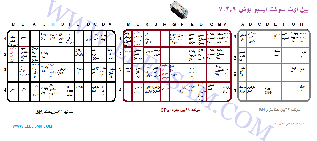 پین اوت ها, دستهبندی نشده, راهنمای تعمیرات و مستندات فنی, نقشه ها پین اوت سوکت ایسیو بوش 7.4.9نصب شده روی سمند و دنا EF7 تاریخ: مهر 15, 1403دی 27, 1404 نویسنده: یحیی منصورزاده بازدیدها: 1903 یحیی منصورزاده پین اوت سوکت ایسیو والیوJ34 پژو 206 پین اوت سوکت ایسیو بوش 5.2زانتیا