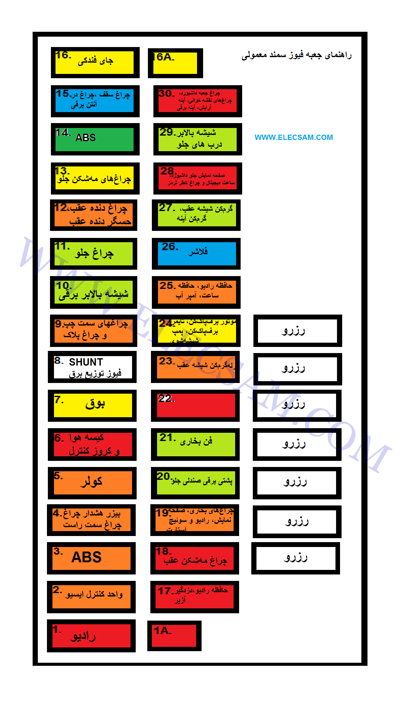 پین اوت ها, راهنمای تعمیرات و مستندات فنی, نقشه ها راهنمای فارسی جعبه فیوز سمند معمولی تاریخ: شهریور 25, 1404دی 27, 1404 نویسنده: یحیی منصورزاده بازدیدها: 951 یحیی منصورزاده راهنمای فارسی جعبه فیوزهای پژو 206 فرانسه جزوه برق پراید