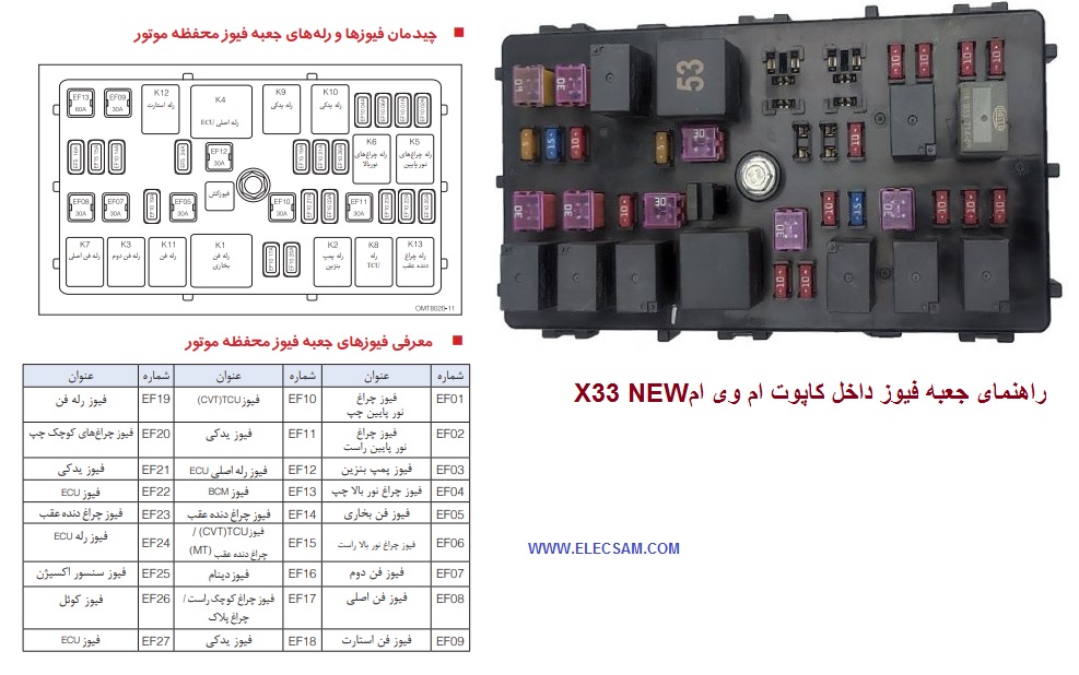 پین اوت ها, راهنمای تعمیرات و مستندات فنی, نقشه ها راهنمای جعبه فیوز MVM X33 تاریخ: آبان 7, 1404آبان 8, 1404 نویسنده: یحیی منصورزاده راهنمای جعبه فیوز داخل اتاق راهنمای جعبه رله فن MVM X33 NEW راهنمای جعبه فیوز MVM X33 NEWداخل کاپوت راهنمای جعبه فیوز داخل کاپوت MVM X33 قدیم بازدیدها: 1 یحیی منصورزاده رونمایی از جدید ترین محصول شرکت تیگو شاسی بلند تیگو 9 دفترچه راهنمای مشتری ام وی ام X33 قدیم